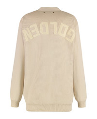 Women’s beige cardigan with 'Golden' lettering on the back