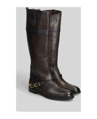 Women's Charlie boots in dark brown leather and clamp on the heel