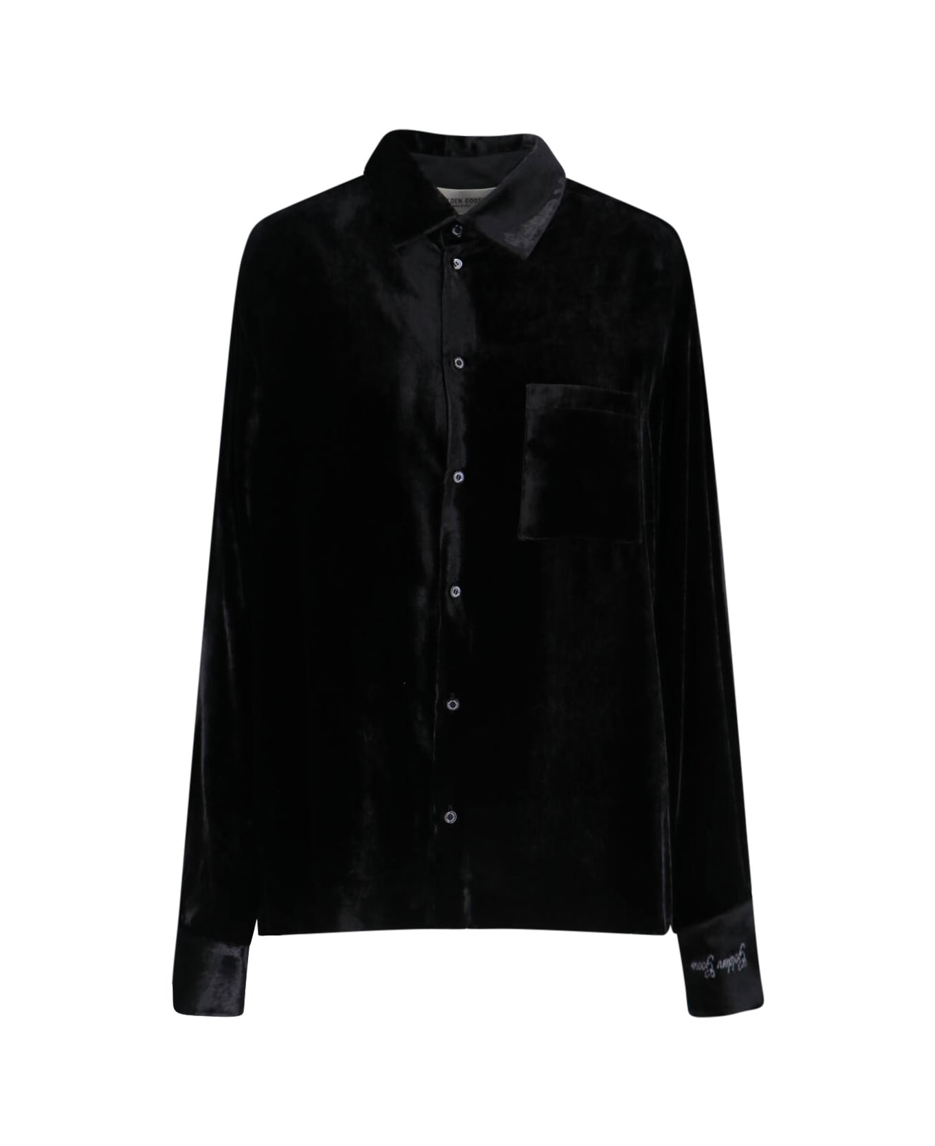 Velvet-effect black shirt with embroidery
