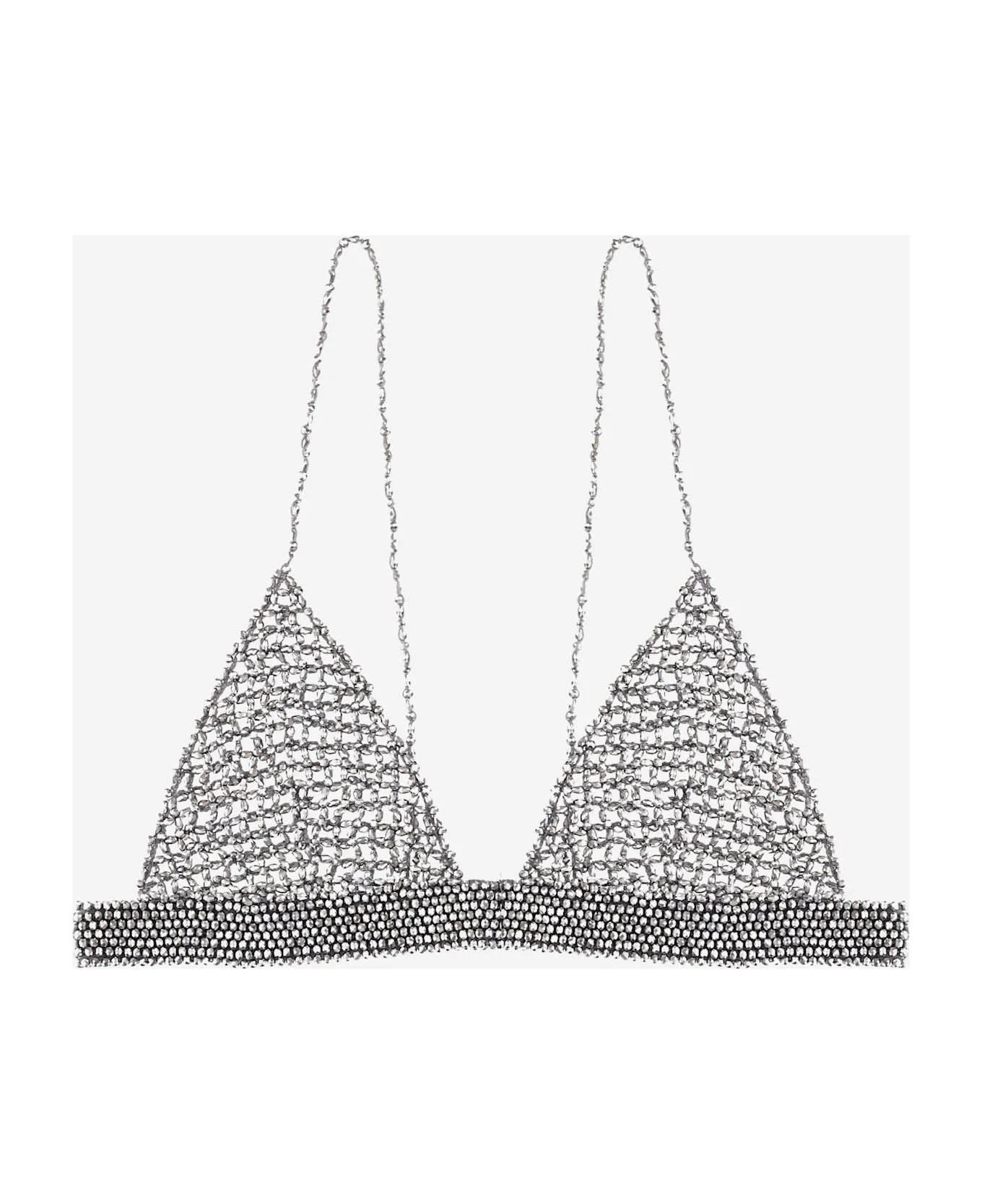 Top made of cotton Handmade crochet work All-over crystal appliques Adjustable hook closure at the back Silver Made in Italy Composition: 100% cotton, 100% polyester Made in: India Color: Silver Size and fit: - The model is wearing size S. - Model measurements: - Height: 175 cm - Bust: 86.5 cm - Waist: 65 cm - Hips: 92 cm - Shoulders: 40 cm - Model number: GWP02270P00197570352