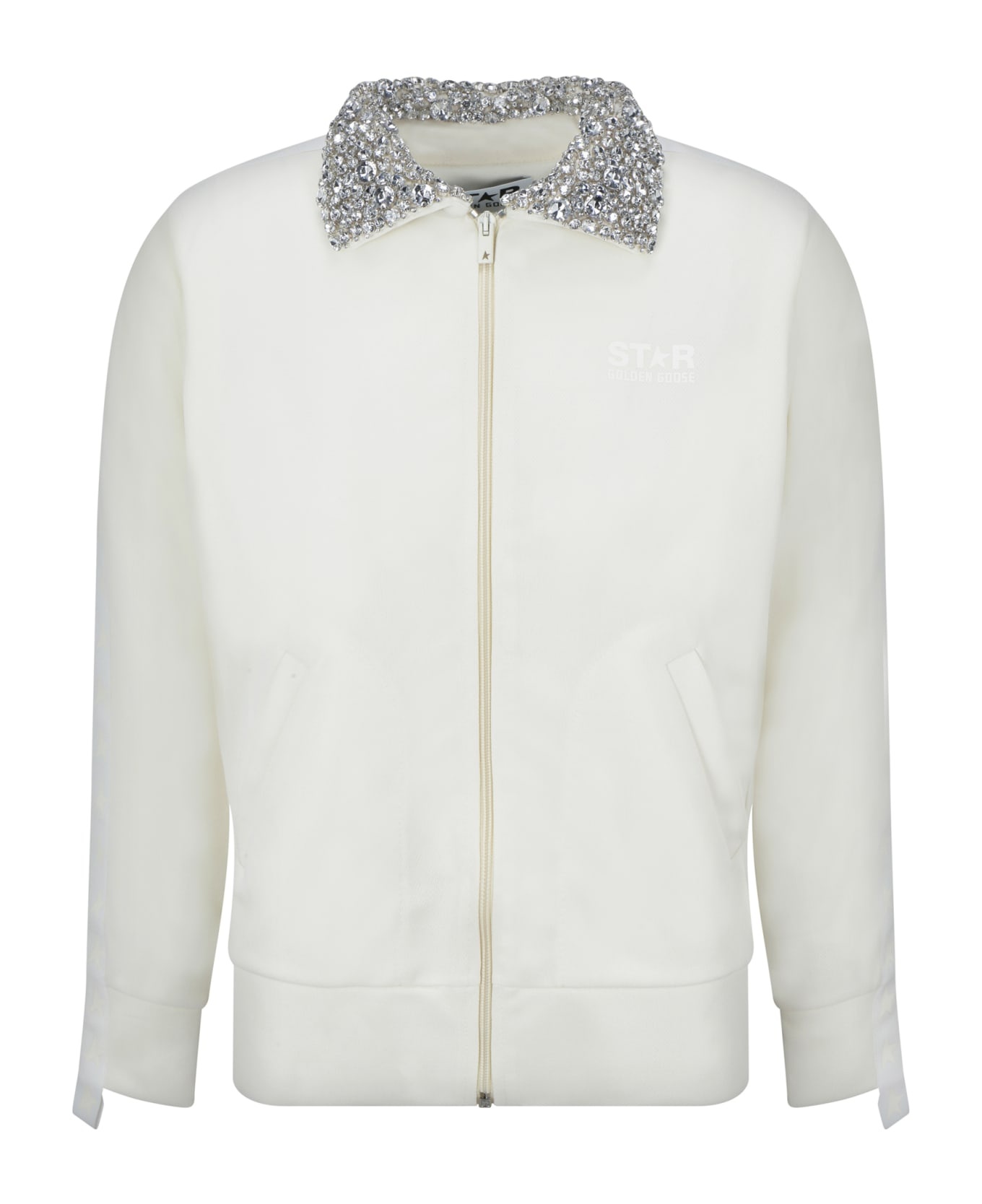 Papyrus white Denise Star Collection zipped sweatshirt with crystal collar