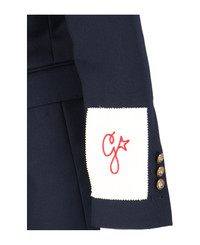 Double-breasted women’s blazer in dark blue with gold-colored buttons