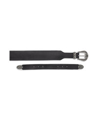 Black belt in washed leather with silver-colored double buckle