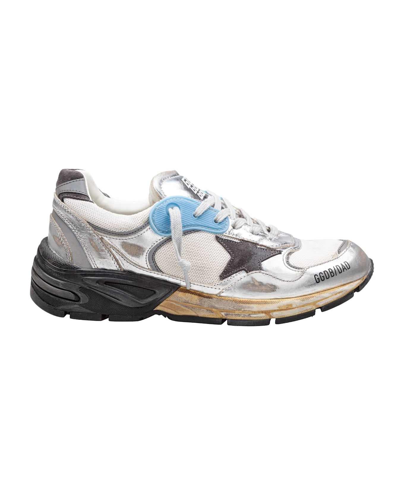 Golden Goose Dad-star Sneakers In Mesh And Laminated Leather Color Grey And Blackrunning