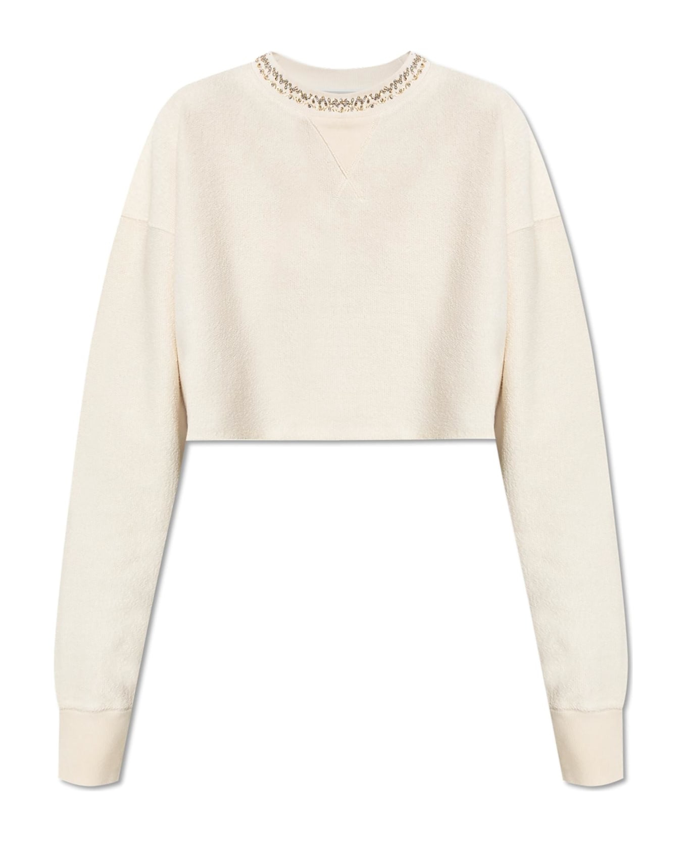 Women's cream cotton cropped sweatshirt with crystals on the front