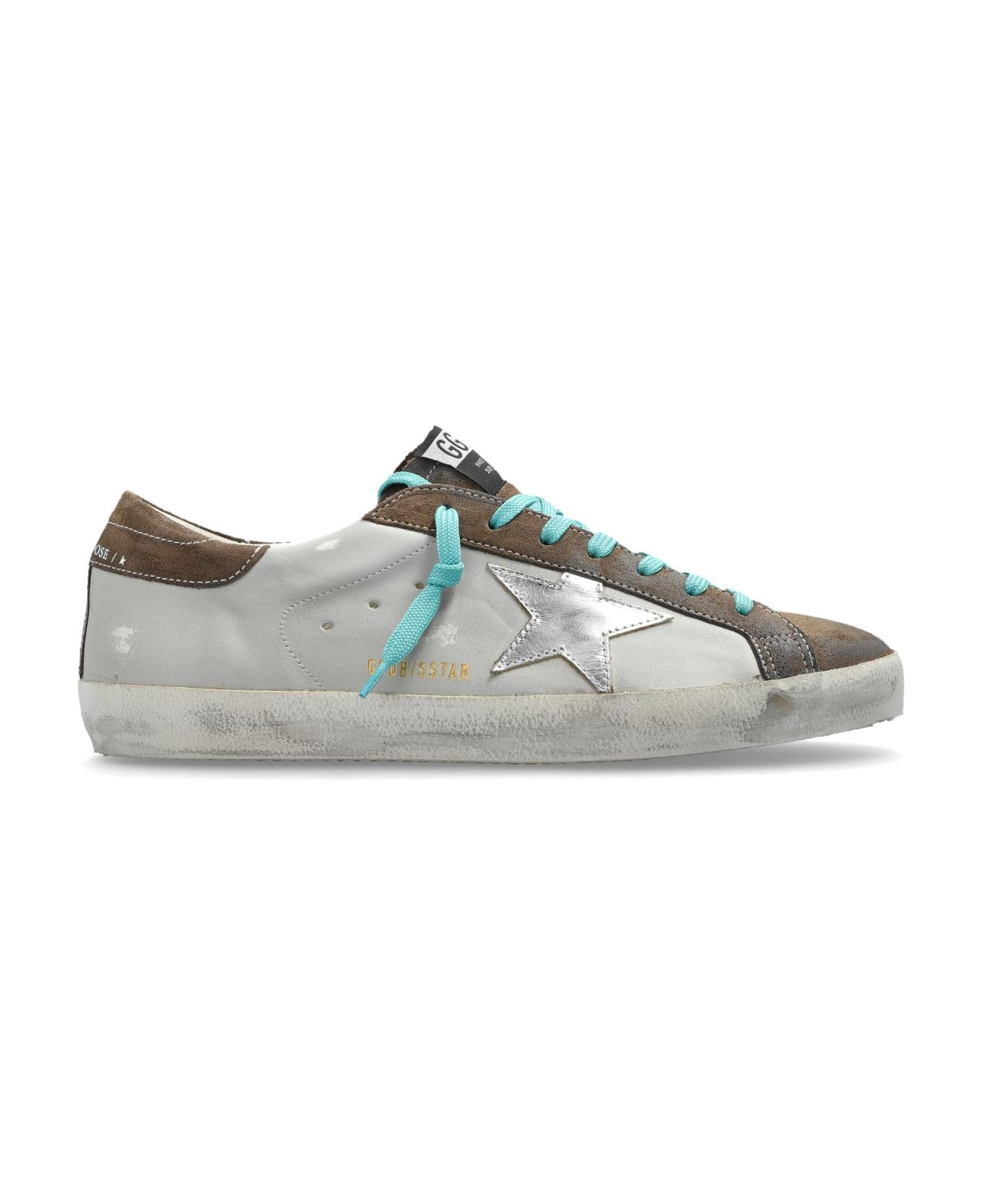 The Super-Star Classic With List sneakers by Golden Goose embody a sophisticated yet rebellious spirit, capturing the essence of Italian luxury and modern street style. Crafted from premium leather, both the exterior and lining offer exquisite comfort, while the durable rubber sole ensures outstanding wearability. Distinctive in design, these low-top sneakers feature a rounded toe and flat silhouette in a refined light gray, with darker brownish accents lending a subtle retro allure. The signature silver star emblem on the outer panel and radiant gold Composition: Inner Layer: Leather Fabric Outer Layer: Leather Sole: Rubber Made in: Italy Color: WHITE Size and fit: - Sole height: 3cm - Sole height at the highest point: 3cm Model number: GMF00101F00748910502
