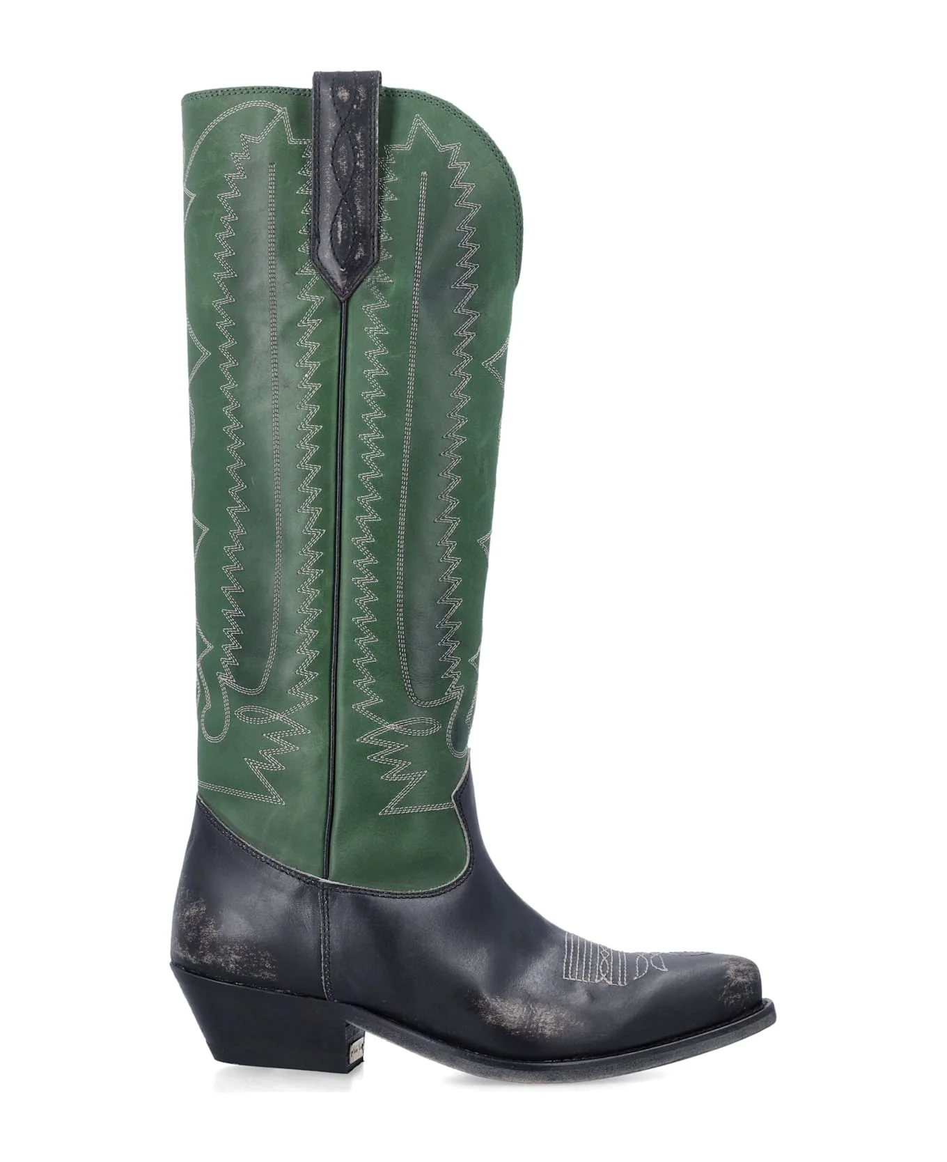 Women's high Wish Star boots in black leather with green leather leg and white embroidery