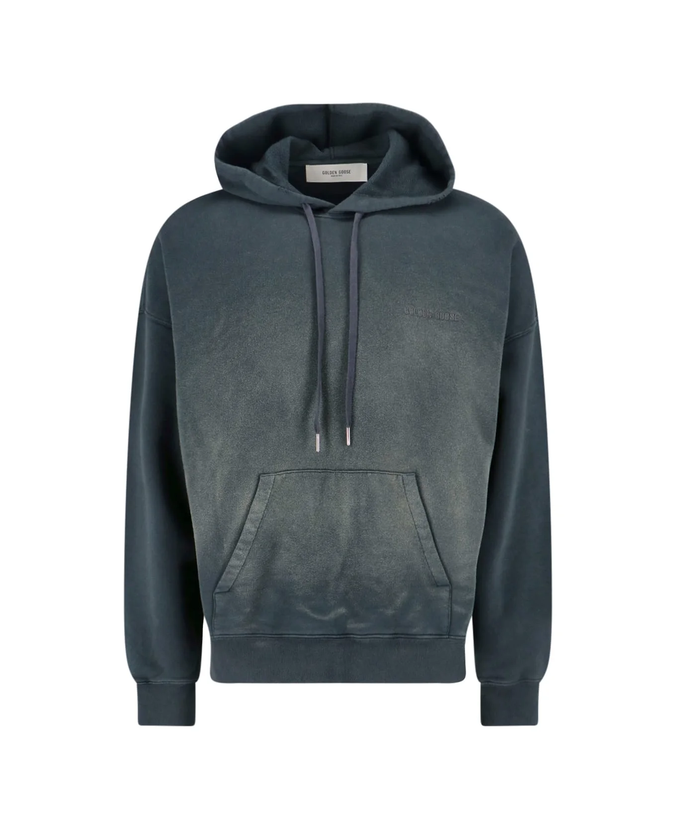 Unisex hooded sweatshirt in black cotton with a bleached effect