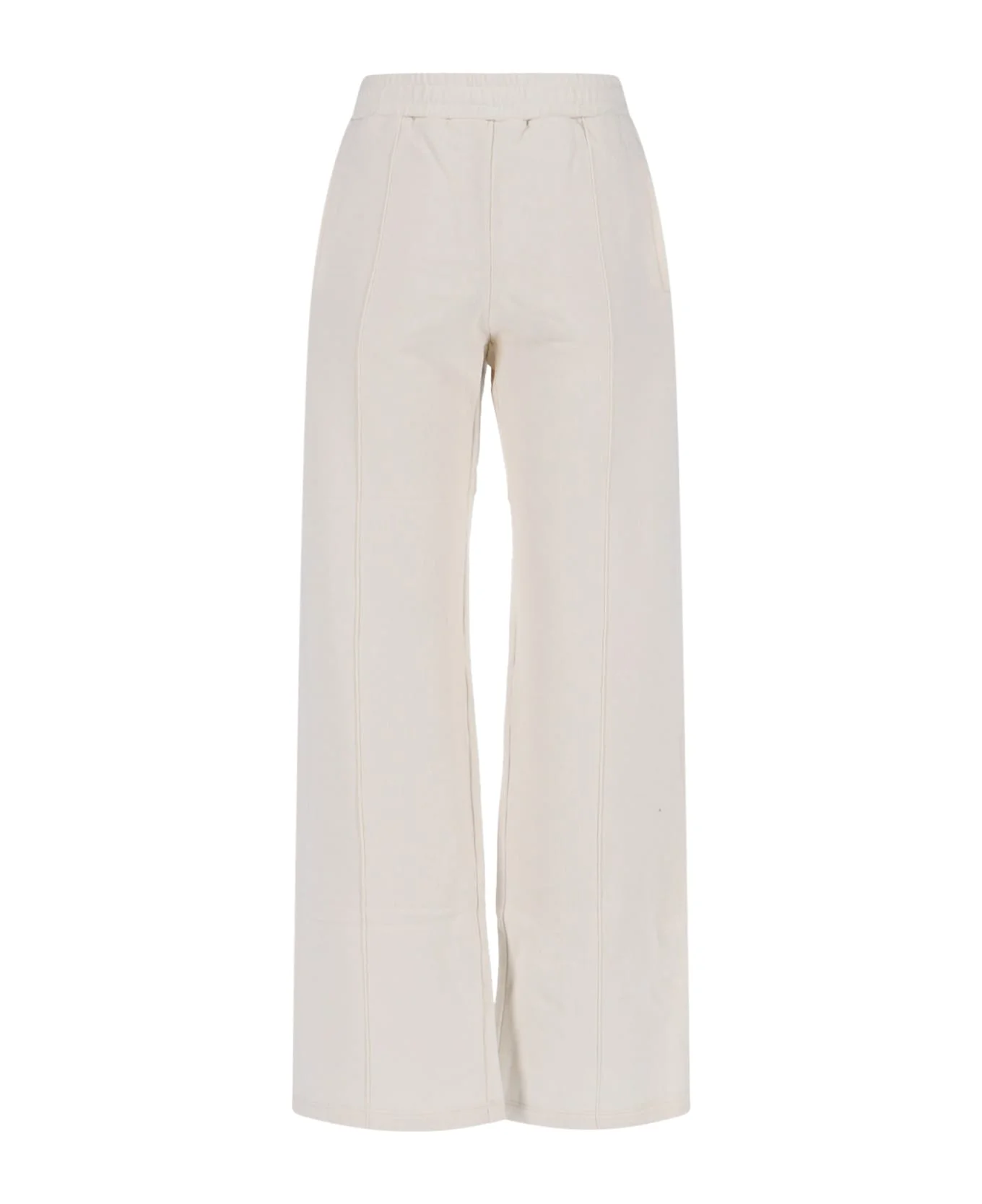 Golden Goose white cotton track pants with elastic mid waist, two side welt pockets, two back pockets, silver metal star logo details on the back, wide leg. Composition: 100% Cotton Made in: Italy Color: White Size and fit: - Vestibilita morbida Model number: GWP02073P00177411560