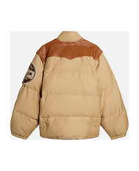 Beige bomber jacket with leather and patch details