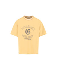 Golden Goose logo T-shirt in yellow cotton with crewneck, short sleeves, maxi black usured logo print on the front, double silver metal star on the back, raw cut hem. Composition: 100% Cotton Made in: Italy Color: Yellow Size and fit: - vestibilita regolare Model number: GMP02330P00213320158