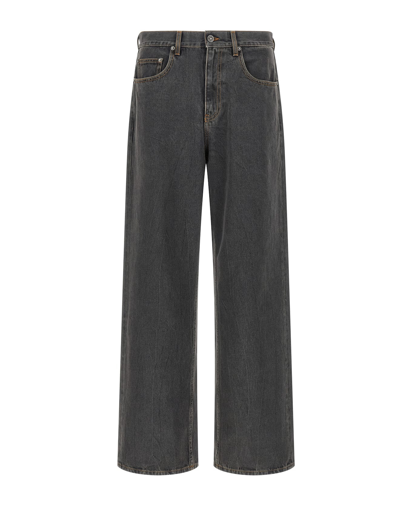 'Morgan' cotton denim jeans with contrast stitching, wide and straight leg, front zip and button closure, five pockets, back trompe l'oeil logo tag. Composition: 100% cotton Made in: Italy Color: Gray Size and fit: - true to size fit Model number: GMP02083P0020886061360613