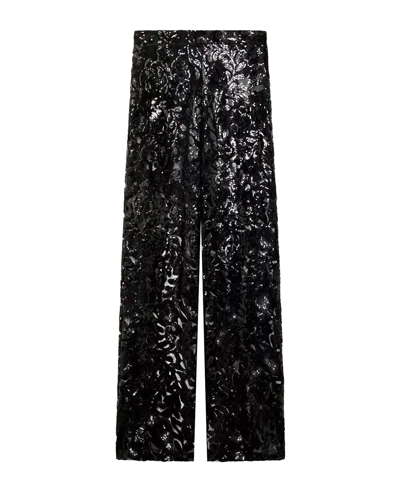 Women's tulle pants with floral embroidery in black sequins