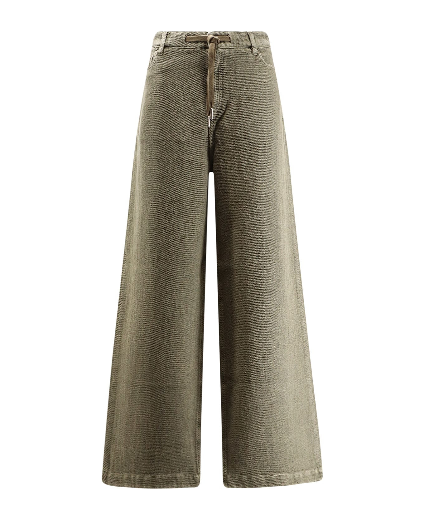 Zip and button closure Adjustable drawstring Five pockets Iconic stars Wide leg Made in Italy 66% cotton, 34% linen SKU: GWP02348P00207935548 Made in: Italy Color: IVY GREEN Model number: GWP02348P00207935548