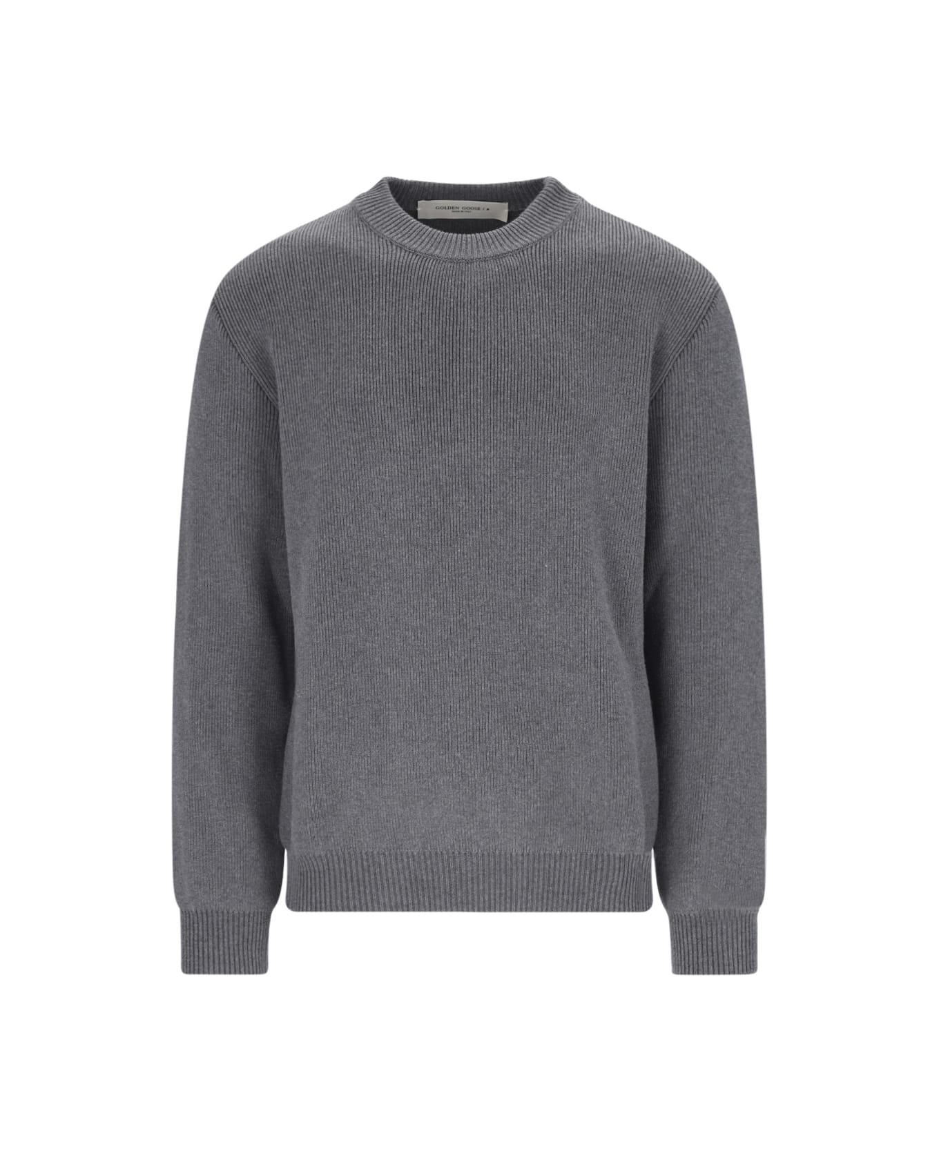 Men's round-neck sweater in dark gray cotton with logo on the back