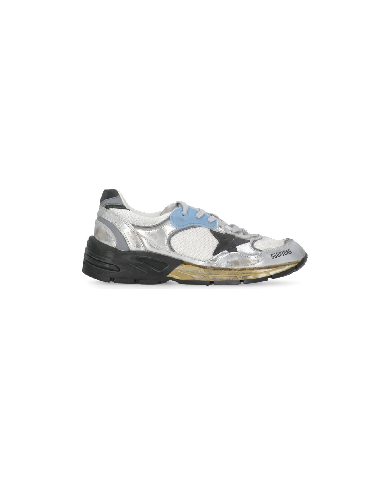 - Silver Golden Goose leather sneakers for woman - Round toe - Front laces fastening - Side contrasting colour iconic star - All-over contrasting colour inserts - Contrasting colour logo at tongue Composition: 62% Cowhide Leather, 25% Polyester, 6% Textile Glass, 4% Polyamide, 3% Polyurethane Textile Lining:, 43% Cotton, 28% Polyurethane Textile, 13% Cowhide, 8% Polyester, 8% Viscose Sole:, 100% Rubber Made in: Italy Color: Silver Size and fit: - Shoe runs true to size Model number: GWF00884F00746370287RUNNINGDAD
