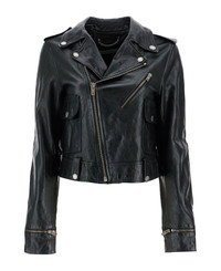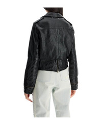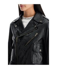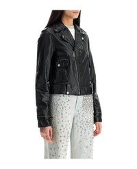 Shiny Black Sheepskin Biker Jacket With Sturdy Zip