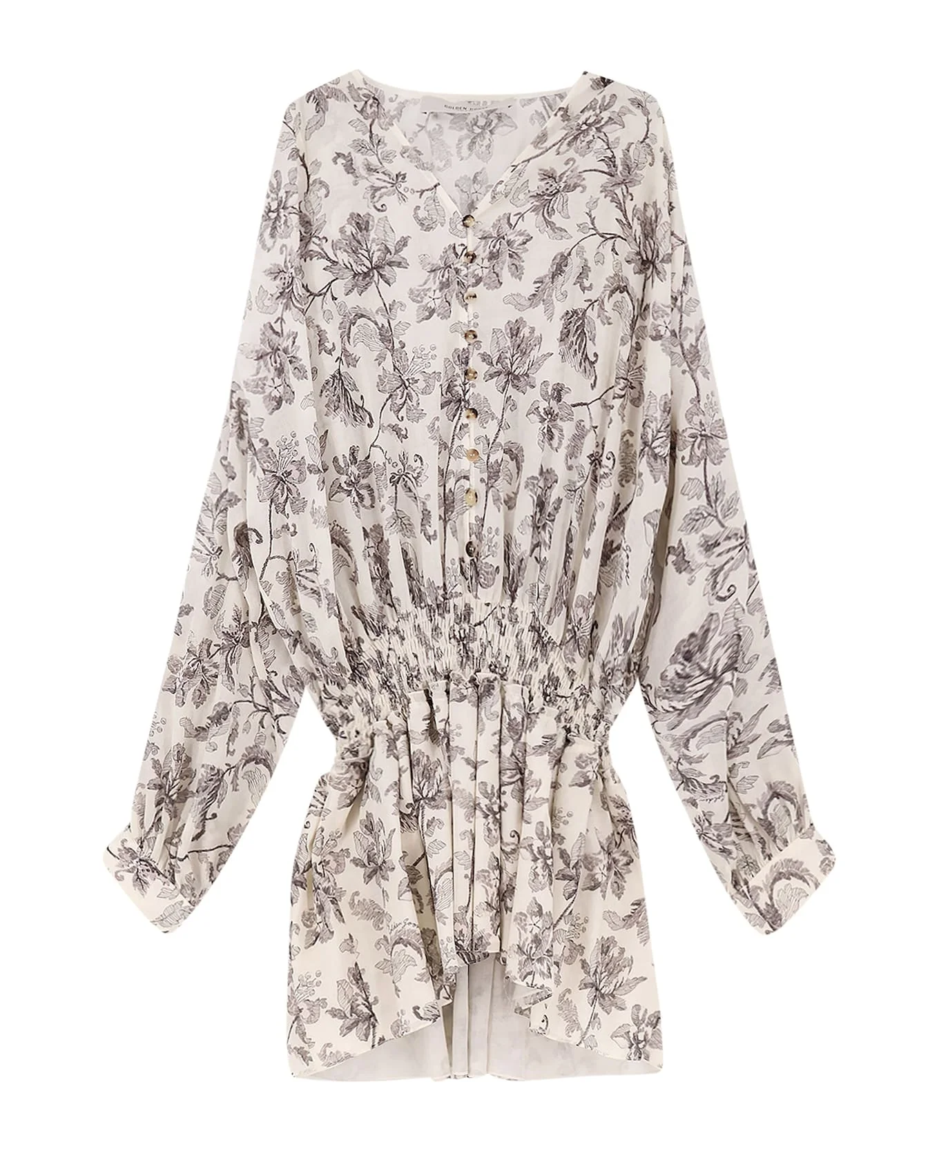 V-neck Long sleeves with cuffs Button closure Elastic at waist Made in Italy 100% Cotton SKU: WP02597P00233583259 Made in: Italy Color: DUSTY WHITE BLACK Model number: GWP02597P00233583259