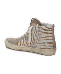 Women's Slide in zebra-print pony skin with green laminated leather flash