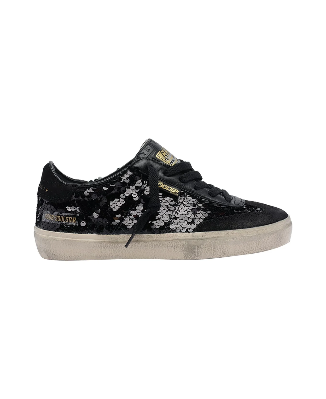 Golden Goose black Soul-Star sneakers, round toe, sequins allover, laterla logo, laces closure Composition: 100% Calf Leather With Paillettes/rubber Sole Made in: Italy Color: Black Model number: GWF00464F0074869010090100