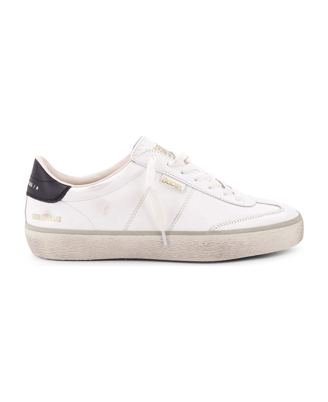 Matchstar in white leather with dark blue leather heel tab