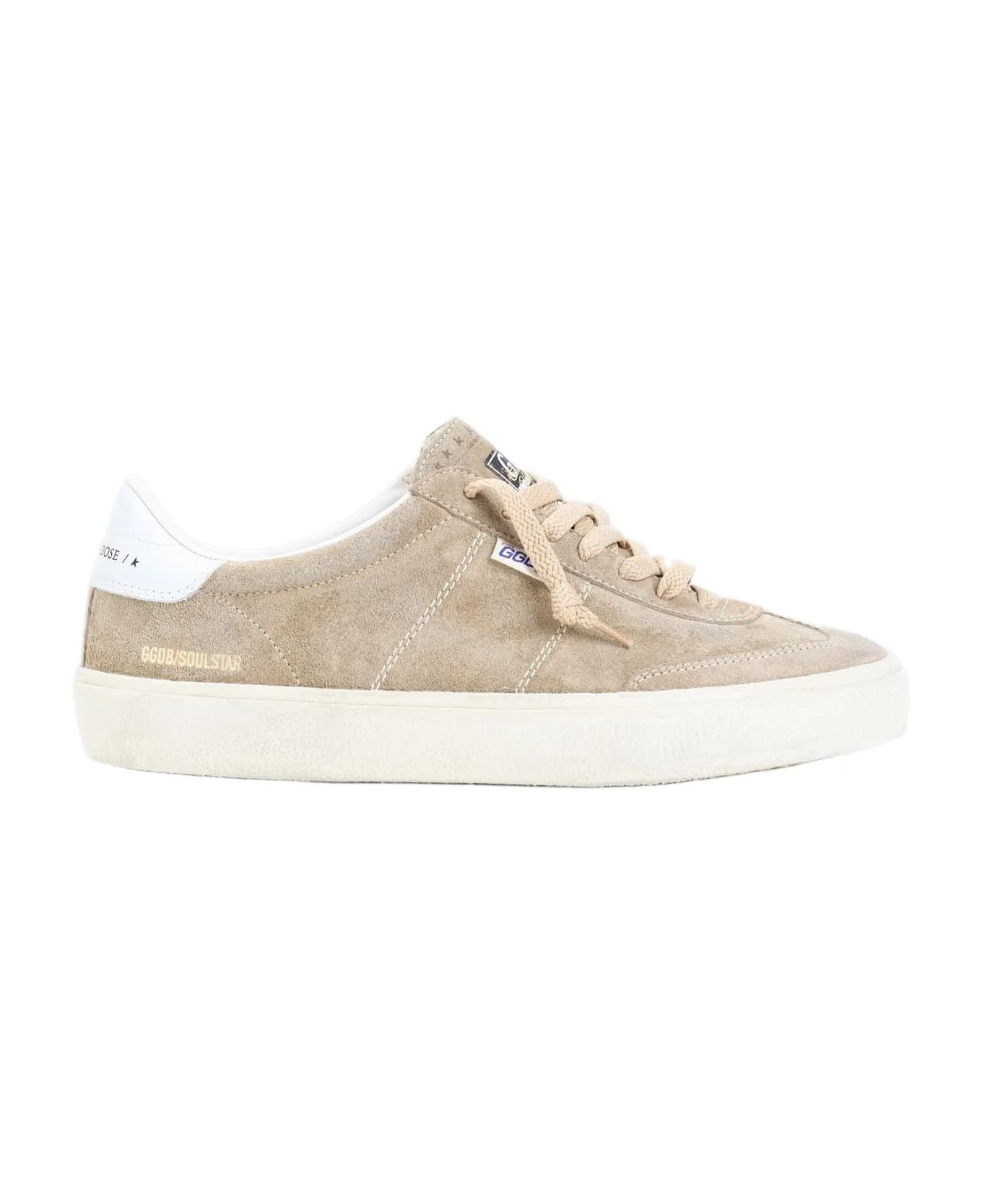 Golden Goose Tobacco Brown Soulstar Sneakers. Round toe, top tonal lace-up fastening, patch logo on the tongue, side patch logo, side gold-tone lettering logo, back white logoed detail, white rubber sole. Made in: Italy Color: Tobacco White Milk Model number: GMF00464F00834715522