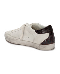 Super-Star distressed metallic and croc-effect leather sneakers White