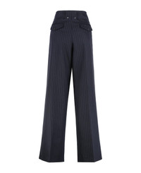 Women’s dark blue tailored trousers with vertical stripe