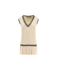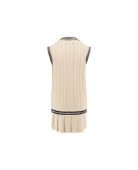 Women's worn-white cotton vest dress with dark blue ribbing and crystals