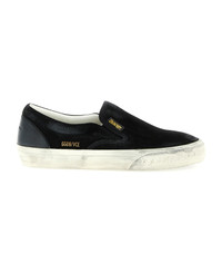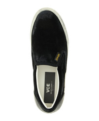 VCE' suede sneakers with lived-in treatment, slip-on style, tone-on-tone leather heel with embossed logo, rubber sole with embossed stars on the front and vintage-effect treatment. Composition: 100% cow leather (Bos Taurus) Made in: Italy Color: Black Size and fit: - EU MEN Model number: GMF00306F0069499010090100