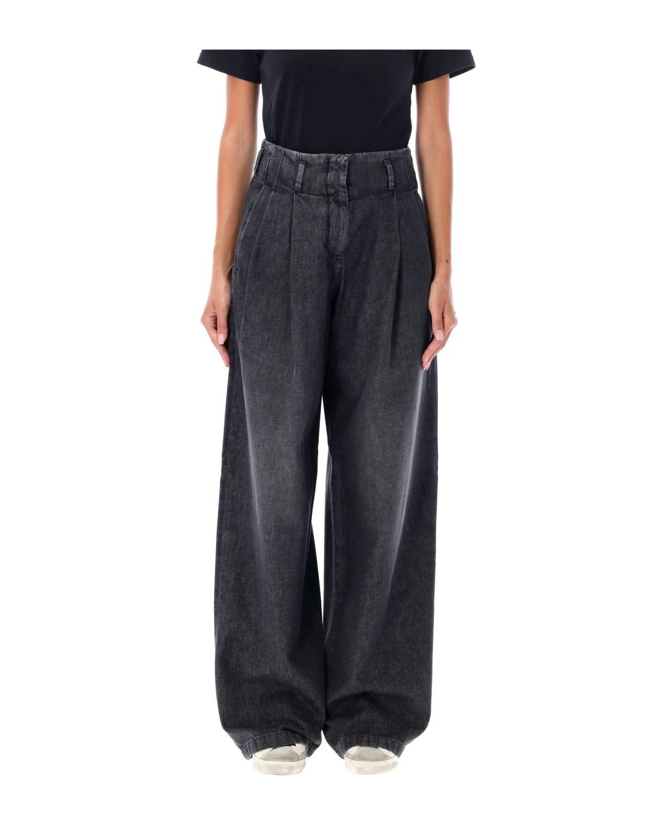 Wide Leg Pleated Jeans