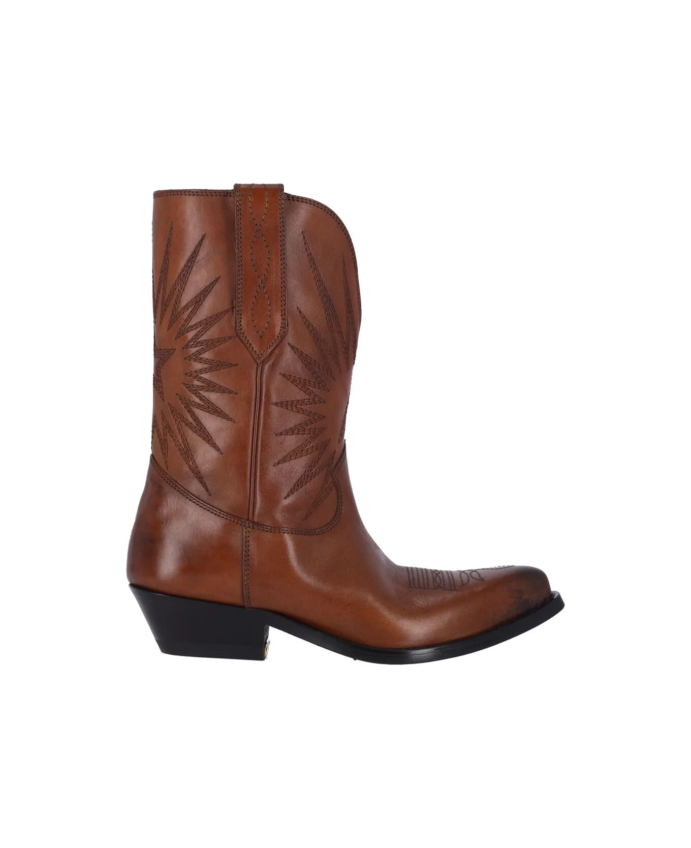 Golden Goose 'Wish star' brown calf leather ankle boots with square toe, all-over western stitching, slip-on fit, leather sole. Composition: 100% Calf Leather Made in: Italy Color: Brown Model number: GWF00784F00760755150