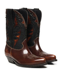 -Wish Star leather boots -Inlaid contrasting star -Tone-on-tone embroidery on the toe -Tapered toe -Metal plate engraved with logo -Leather sole -Made in Italy -Color: Brown, Black Composition: 100% Cowskin Made in: Italy Color: Brown/black Model number: GWF00861F00691355645