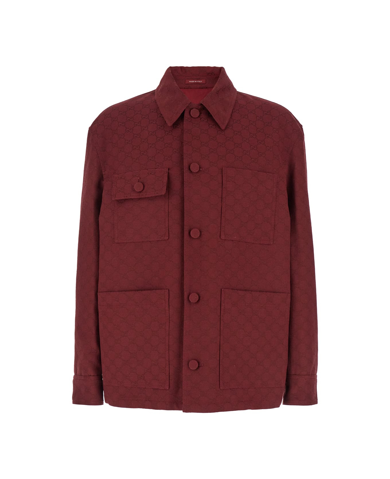 Jacket Bordeaux Pointed collar Long sleeves with cuffs Front button closure Tonal covered buttons Four patch pockets at the front All-over GG motif Straight hem Cotton blend Oversized fit Composition: Made in: Italy Color: Bordeaux Model number: 800792Z8BU16207