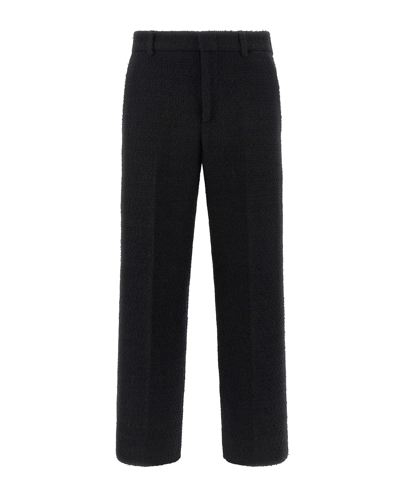 Boucle wool trousers, unlined, stretched pleat, straight leg, zip hook and front button closure, pockets. Composition: 57% wool, 43% polyamide Made in: Italy Color: Black Size and fit: - true to size fit Model number: 837421Z7ATM
