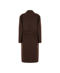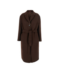 Brown Reversible Double-breasted Coat With Notched Revers And Belt In Wool Woman