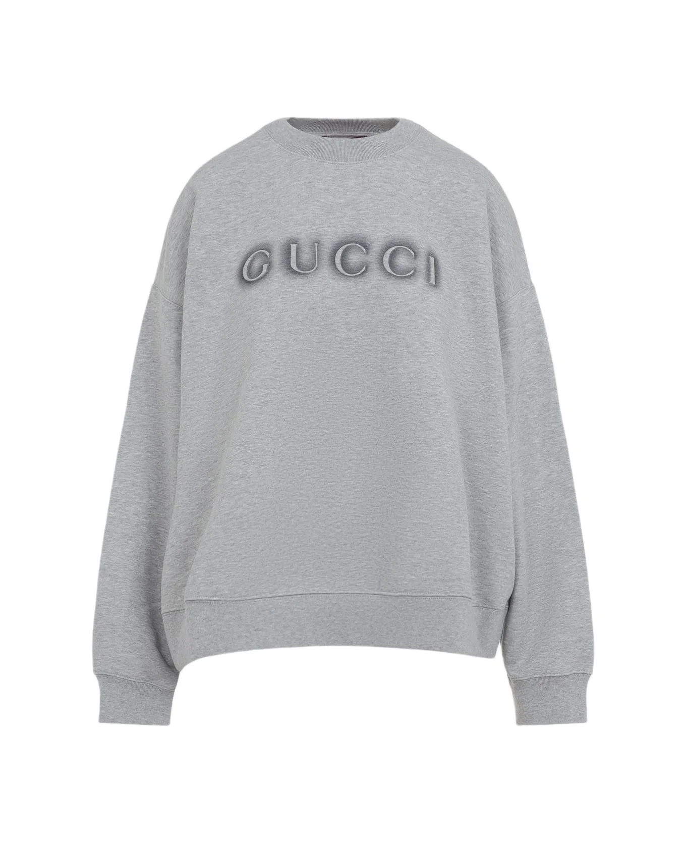 Gucci Grey Cotton Sweatshirt. Crafted from melange grey cotton, round neckline, logo stamped on the chest, dropped shoulders, long sleeves, ribbed edges, relaxed fit. Made in: Italy Color: GREY Model number: 838450XJHGI1056
