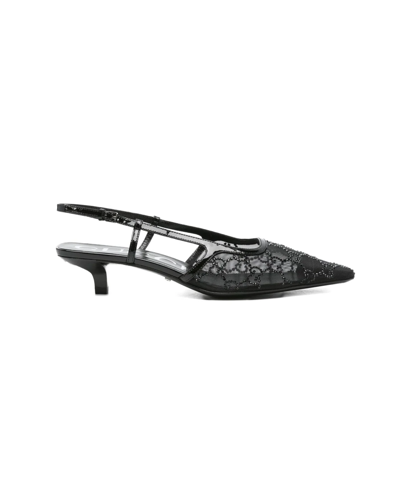 black crystal embellishments slingback strap pointed toe kitten heel logo pattern Composition: Mesh, 100% Leather, 100% Made in: Italy Color: Black Size and fit: - W - x H x D cm handle - Model number: 840728FAEQ01046