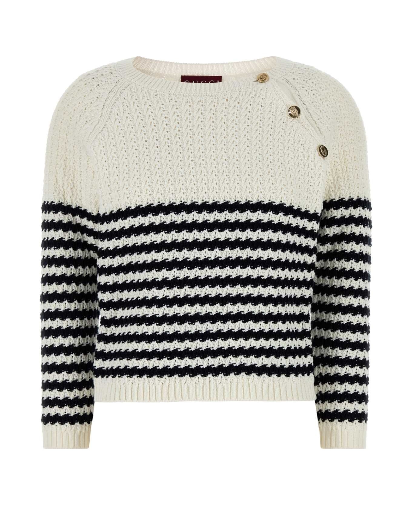 Embroidered Cotton Sweater from Gucci Made in: Italy Color: WHITENAVY Model number: 818554XKELV9062