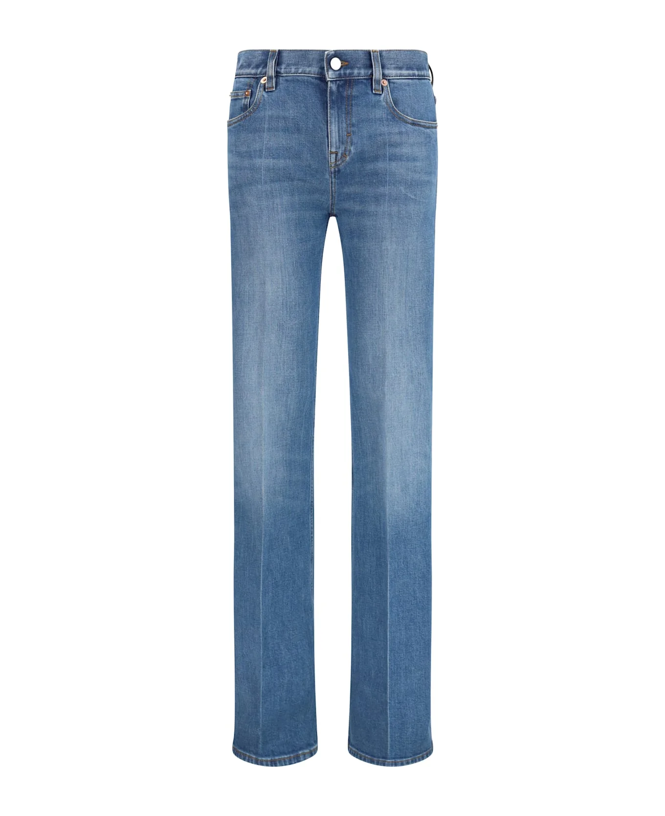The flare stretch cotton jeans by gucci are part of the women s cruise 2026 collection, which celebrates the house s wardrobe classics by blending archival inspiration with the history of florence. crafted from certified blue stretch cotton denim with a stone-washed finish, they feature a classic five-pocket design inspired by traditional denim styles. the trousers are finished with a gucci rosso ancora naplak label, button and zip closure, low waist, and a flared cut that enhances the silhouette with a dynamic, elongated look. Composition: 98% % Cotton, 2% % Elastane Made in: Italy Model number: 855671XDDFK4011