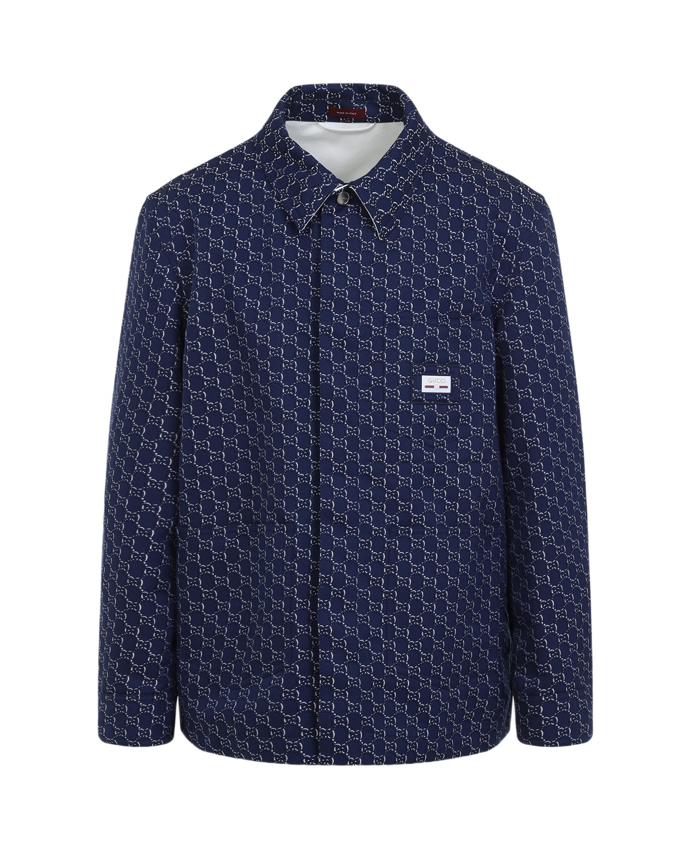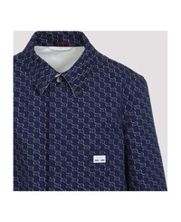 Gucci GG Logo Blue Cotton Shirt. Crafted from blue and white cotton jacquard with GG Shadow, pointed collar, front button fastening, patch pocket with branded label detail on the chest, two pockets on the front, long sleeves, buttoned cuffs, unlined. Made in: Italy Color: Blue White Model number: 813998ZAR264069