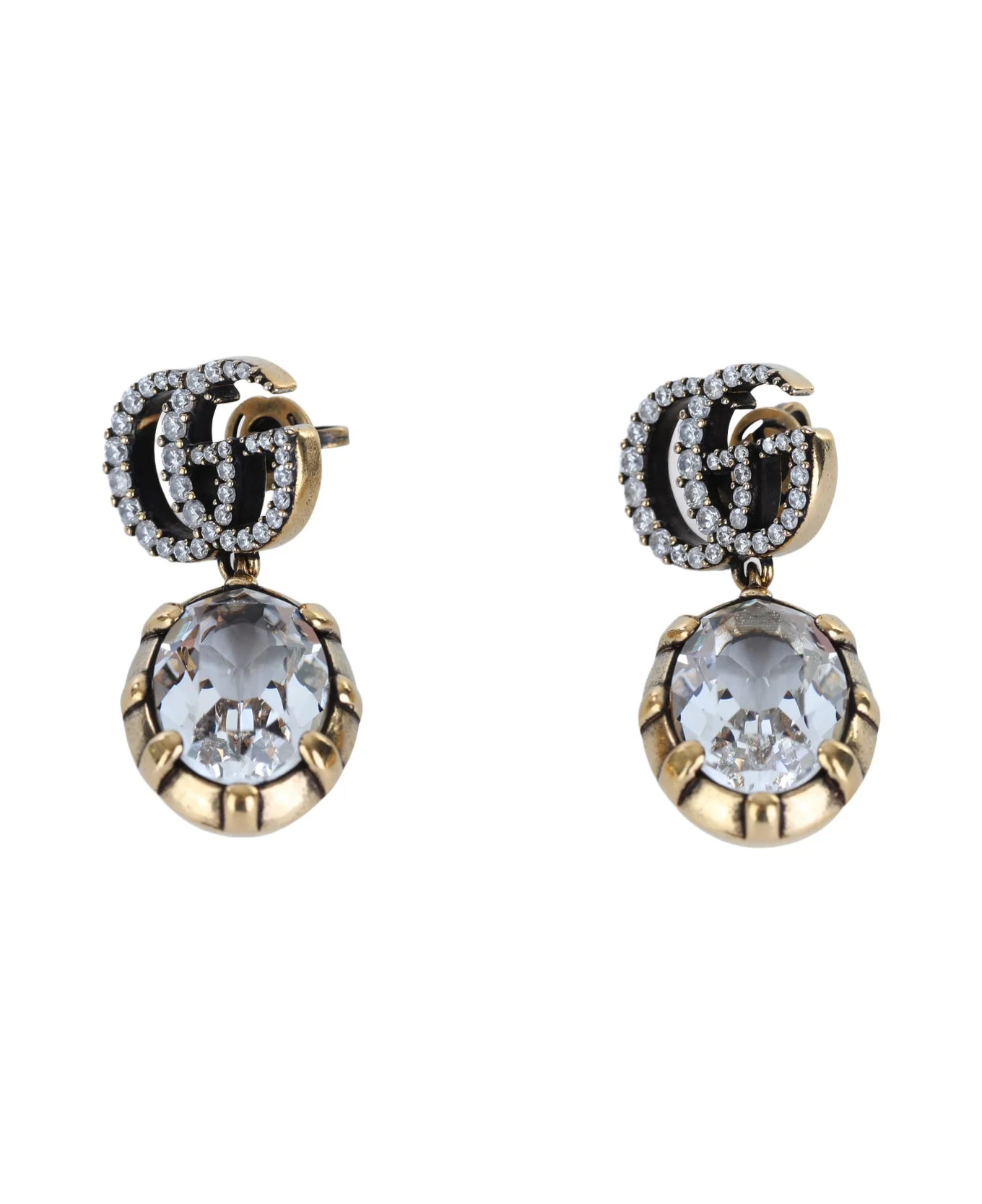 Gold brass earrings from Gucci featuring gold tone, back fastening, crystals and logo. Composition: _, 100% Brass Made in: Italy Color: CRYSTAL Model number: 847952IAAGC8066