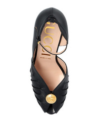 100% Leather - Inner: 100% Leather - Insole: 100% Leather - Sole: 100% Leather - Heel: 10. 0 cm / 25. 4 in - branded insole - Open toe - Gold-colored metal application - 'Interlocking G' logo - Ankle side buckle fastening Made in: Italy Color: Black Model number: 727516C9D001000
