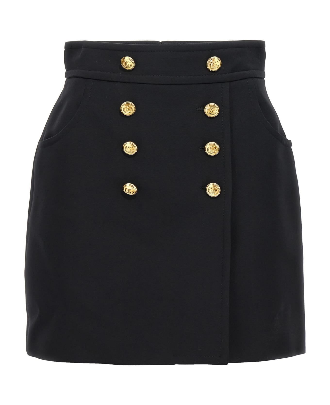 53% Silk 47% Wool - Back zip closure - Two side pockets - Hand wash - High-waist - Gold-tone decorative button - Crêpe effect Made in: Italy Color: Black Size and fit: - true to size fit Model number: 756549ZAD881000