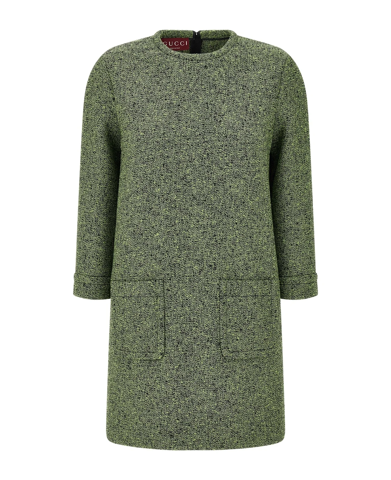 'Mouline' wool and cotton blend mini dress, crew neck, unlined, front patch pockets, back closure with hidden zip, slightly padded seams, long sleeves. Composition: 59% cotton 37% wool 3% polyamide 1% elastane Made in: Italy Color: Green Size and fit: - True to size fit Model number: 849645ZATH53005