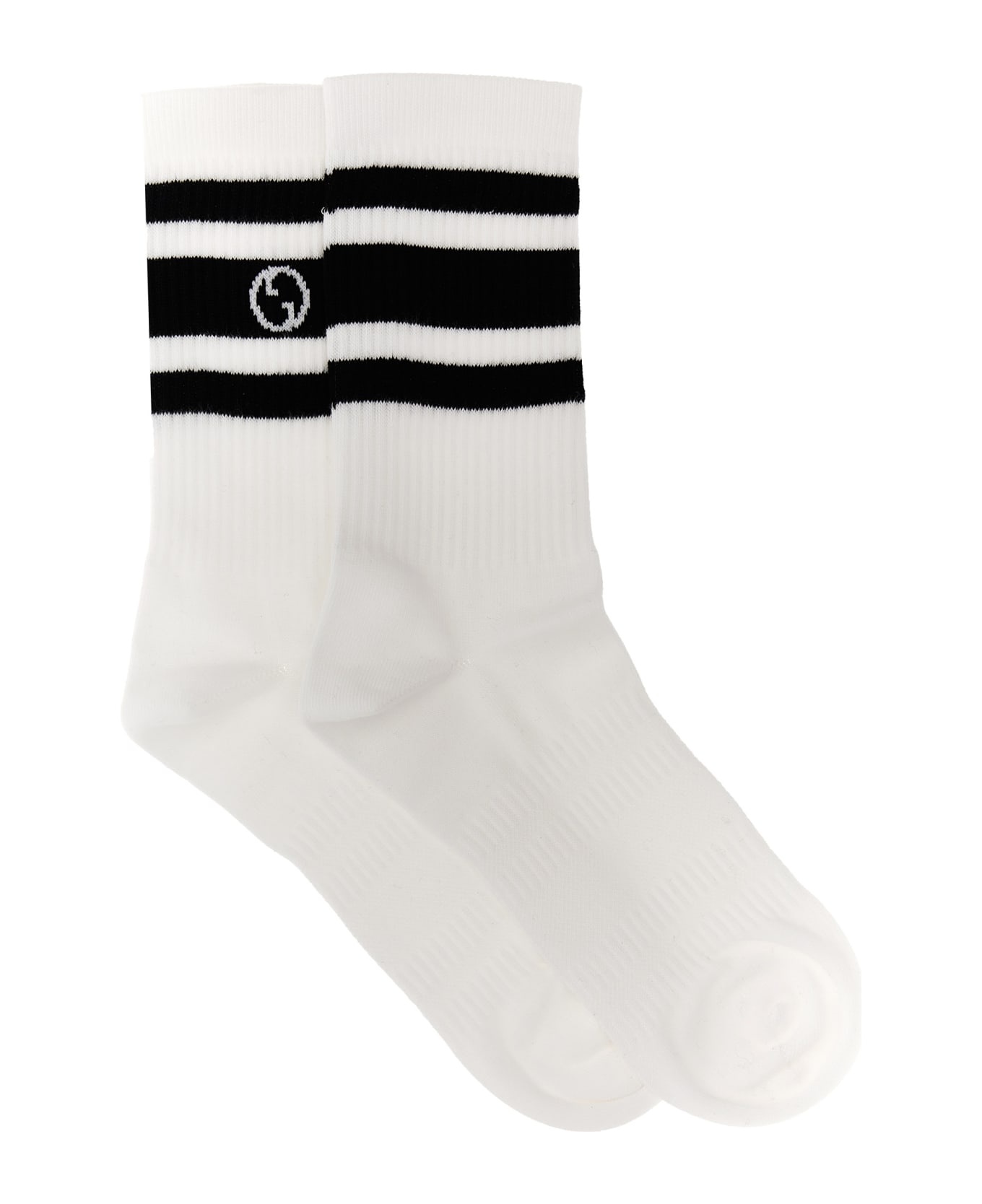 Cotton blend socks with logo and Jacquard Web Tape. Composition: 88% cotton 11% polyamide 2% elastane Made in: Italy Color: White/Black Size and fit: - True to size fit Model number: 7507054GADU1060
