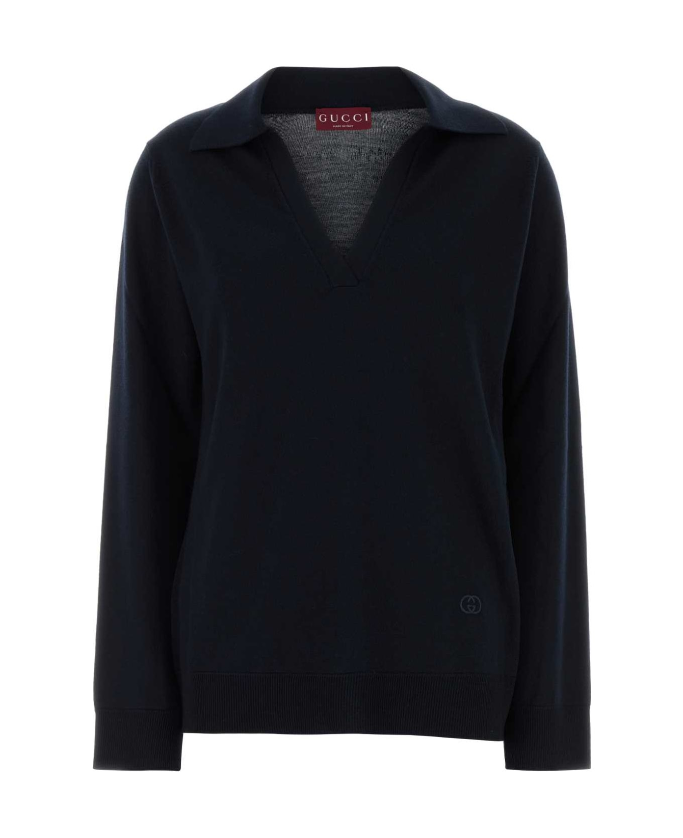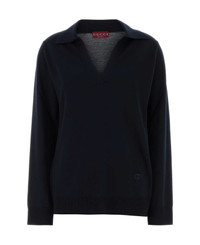 Navy Blue Wool Oversize Polo Shirt