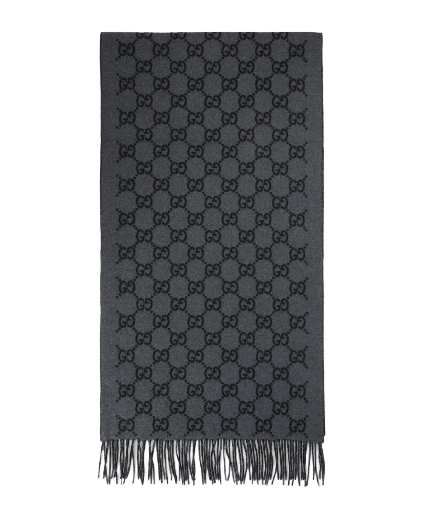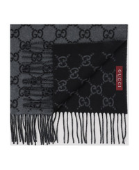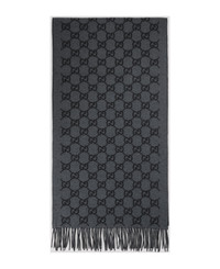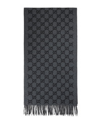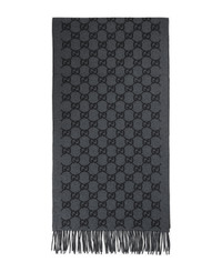 Gucci New Canvy Grey and Black Cashmere Scarf. Crafted from grey and black cashmere, GG logo jacquard all over, fringed hems. Made in: Italy Color: Graphite Black Size and fit: - 45cm X 190cm Model number: 8123174GABX1260