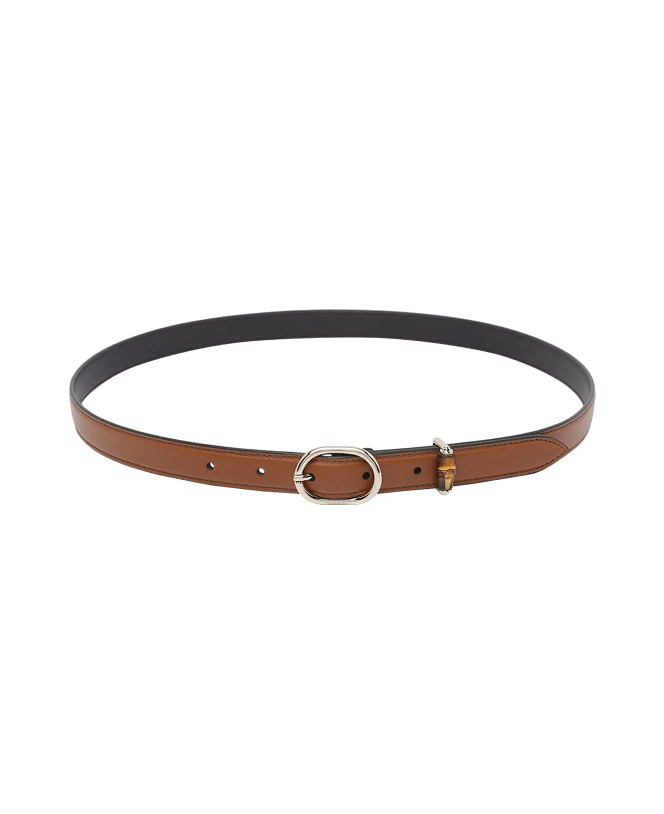 Gucci brown Oval Buckle thin belt, frontal buckle closure, leather model Composition: 100% Calf Leather Made in: Italy Color: Brown Size and fit: - 2 cm Model number: 855897AAFYJ2744
