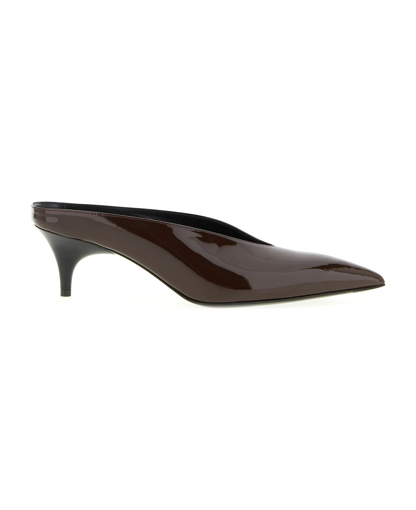 Patent leather mules, pointed toe, heel, leather sole. Composition: 100% calfskin leather (Bos Taurus) Made in: Italy Color: Bordeaux Size and fit: - EU WOMEN HEEL: 7 cm Model number: 851087BNC002270
